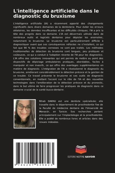 L'intelligence artificielle (IA) a récemment apporté des changements significatifs dans divers domaines de la dentisterie. Pour éviter les erreurs aléatoires, les données insuffisantes et les difficultés cliniques, l'IA a pris la tête des progrès dans ce domaine. L'IA est désormais utilisée dans de nombreux outils et logiciels dentaires pour dépister les anomalies, notamment le bruxisme. Le bruxisme est particulièrement difficile à diagnostiquer avant que ses conséquences néfastes ne s'installent, ce qui fait que 90 % des troubles connexes ne sont pas traités. Les méthodes traditionnelles de détection du bruxisme sont longues, peu pratiques et coûteuses, ce qui a conduit à l'adoption récente de l'IA pour les diagnostics. L'IA offre des solutions innovantes qui ont permis de mettre au point des dispositifs de dépistage ambulatoires pratiques, abordables, faciles à manipuler et non invasifs, ce qui offre des avantages supplémentaires en matière de diagnostic. L'intégration de l'IA a révolutionné le diagnostic du bruxisme, améliorant considérablement la détection précoce et la gestion de ce trouble. Ce travail présente le bruxisme et ses outils de diagnostic conventionnels, en mettant l'accent sur le rôle de l'IA et des nouvelles technologies dans l'amélioration de la détection précoce et du pronostic, dans le but ultime de faire progresser les pratiques de diagnostic dans ce domaine crucial de la santé bucco-dentaire.