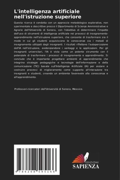 Questa ricerca è condotta con un approccio metodologico esplorativo, non sperimentale e descrittivo presso il Dipartimento di Scienze Amministrative e Agrarie dell'Università di Sonora, con l'obiettivo di determinare l'impatto dell'uso di strumenti di intelligenza artificiale nei processi di insegnamento-apprendimento nell'istruzione superiore, che consente di trasformare sia il modo in cui gli studenti acquisiscono le conoscenze sia i metodi di insegnamento utilizzati dagli insegnanti. I risultati riflettono l'autopercezione dell'IA nell'istruzione, evidenziandone i vantaggi e le applicazioni. Per gli insegnanti universitari, l'IA è vista come un potente strumento con il potenziale di trasformare i processi di insegnamento e apprendimento. Si conclude che è importante progettare ambienti di apprendimento che integrino strategie pedagogiche e tecnologie dell'informazione e della comunicazione (TIC) basate sull'Intelligenza Artificiale (IA) per aiutare a costruire processi di miglioramento come supporto all'interazione tra insegnanti e studenti, creando un ambiente favorevole alla conoscenza e all'apprendimento.