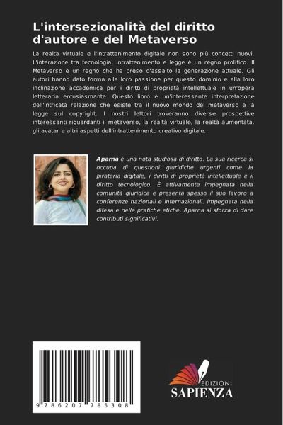 La realtà virtuale e l'intrattenimento digitale non sono più concetti nuovi. L'interazione tra tecnologia, intrattenimento e legge è un regno prolifico. Il Metaverso è un regno che ha preso d'assalto la generazione attuale. Gli autori hanno dato forma alla loro passione per questo dominio e alla loro inclinazione accademica per i diritti di proprietà intellettuale in un'opera letteraria entusiasmante. Questo libro è un'interessante interpretazione dell'intricata relazione che esiste tra il nuovo mondo del metaverso e la legge sul copyright. I nostri lettori troveranno diverse prospettive interessanti riguardanti il metaverso, la realtà virtuale, la realtà aumentata, gli avatar e altri aspetti dell'intrattenimento creativo digitale.