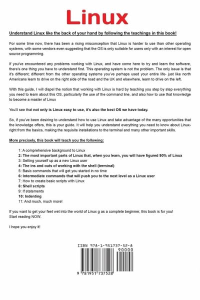 Understand Linux like the back of your hand by following the teachings in this book! For some time now, there has been a rising misconception that Linux is harder to use than other operating systems, with some vendors even suggesting that the OS is only suitable for users only with an interest for open source programming. If you've encountered any problems working with Linux, and have come here to try and learn the software, there’s one thing you have to understand first. This operating system is not the problem. The only issue is that it's different; different from the other operating systems you’ve perhaps used your entire life- just like north Americans learn to drive on the right side of the road and the UK and elsewhere, learn to drive on the left. With this guide, I will dispel the notion that working with Linux is hard by teaching you step by step everything you need to learn about this OS, particularly the use of the command line, and also how to use that knowledge to become a master of Linux You’ll see that not only is Linux easy to use, it’s also the best OS we have today. So, if you’ve been desiring to understand how to use Linux and take advantage of the many opportunities that the knowledge offers, this is your guide. It will help you understand everything you need to know about Linux- right from the basics, making the requisite installations to the terminal and many other important skills.