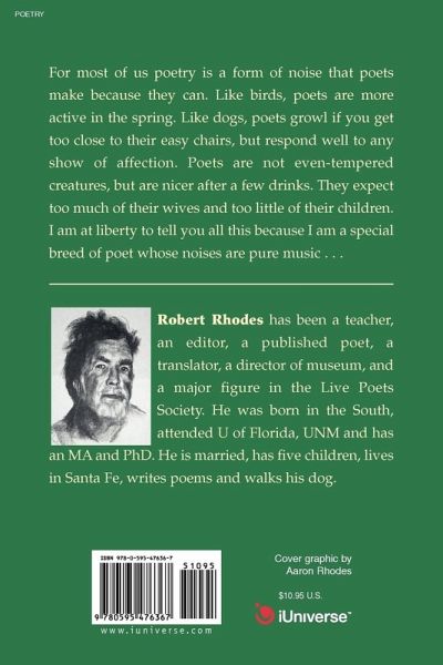 For most of us poetry is a form of noise that poets make because they can. Like birds, poets are more active in the spring. Like dogs, poets growl if you get too close to their easy chairs, but respond well to any show of affection. Poets are not even-tempered creatures, but are nicer after a few drinks. They expect too much of their wives and too little of their children. I am at liberty to tell you all this because I am a special breed of poet whose noises are pure music . . .