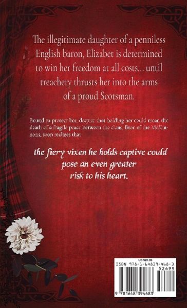 The illegitimate daughter of a penniless English baron, Elizabet is determined to win her freedom at all costs... until treachery thrusts her into the arms of a proud Scotsman. Bound to protect her, despite that holding her could mean the death of a fragile peace between the clans, Broc of the McKinnons, soon realizes that the fiery vixen he holds captive could pose an even greater risk to his heart.