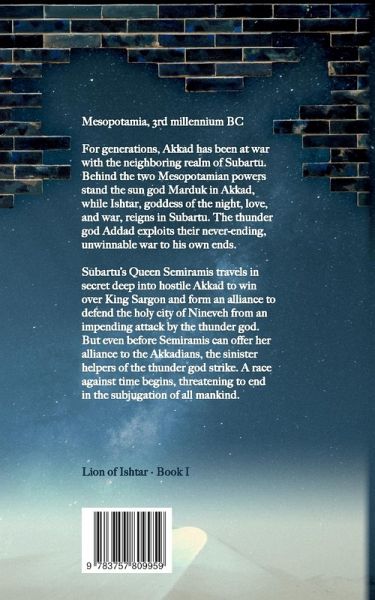 Mesopotamia, 3rd millennium BCFor generations, Akkad has been at war with the neighboring realm of Subartu. Behind the two Mesopotamian powers stand the sun god Marduk in Akkad, while Ishtar, goddess of the night, love, and war, reigns in Subartu. The thunder god Addad exploits their never-ending, unwinnable war to his own ends. Subartu´s Queen Semiramis travels in secret deep into hostile Akkad to win over King Sargon and form an alliance to defend the holy city of Nineveh from an impending attack by the thunder god. But even before Semiramis can offer her alliance to the Akkadians, the sinister helpers of the thunder god strike. A race against time begins, threatening to end in the subjugation of all mankind.