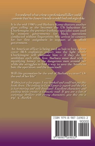 I wondered what crime a professional killer could commit that his closest friends would find unforgivable. It is the mid 1980's and Barbara Kemp shatters another glass ceiling as she becomes the US babysitter for Charlemagne, the premier freelance specialist team used by western governments for black operations conducted without fingerprints. She arrives in-country for her first assignment in support of an allied government. An American officer is being used as bait to lure a deep cover IRA explosives expert into the light where Charlemagne will eliminate him - if they do not annihilate each other first. Barbara must deal with a mystifying lunacy in the dangerous men around her while she struggles to find a way to save the American bait, the operation, and the team itself. Will this promotion be the end of Barbara's career? Or the end of her life? Lion Tamer is the fourth novel in K.A. Bachus's fast-paced Charlemagne Files series chronicling the lives of a team of deadly Cold War intelligence operatives over a span of three decades.