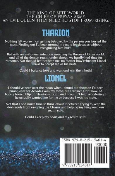 The King of Afterworld. The Chief of Freya's Army. An evil queen they need to stop from rising. Tharion Nothing felt worse than getting betrayed by the person you trusted the most. Finding out I'd been around my mate for decades without recognizing him hurt. But with an evil queen intent on usurping the throne of Otherworld, and all of the demon realm under threat, we hardly had time for romance. Not that I'd let that stop me, no matter how reluctant Lionel was to accept me as his mate. Could I balance love and war, and win them both? Lionel I should've been over the moon when I found out the man I'd been pining over for decades was my mate, but I wasn't. Until now, I'd barely been a blip on Tharion's radar, and I couldn't help wondering if he actually wanted me for me or because I was his mate. Not that I had much time to think about it between trying to keep the dark souls from escaping the Chasm and helping my king keep our realm safe. Could I keep my heart and my realm safe? Lionel, the final book in the Lords of Otherworld series, features a soul collector who doesn't quite know what to do when his pining bears fruits, a king who is determined to win his love, and a final fight to protect all of the realms from the rule of an evil queen. Each book in the Lords of Otherworld series features a different couple with an overarching plotline. It is recommended to read the books in order for the most enjoyment.
