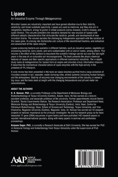 Microbial lipases are industrially important and have gained attention due to their stability, selectivity, and broad substrate specificity. Lipases are used as medicine, and they also aid in indigestion, heartburn, allergy to gluten in wheat products (celiac disease), Crohn's disease, and cystic fibrosis. This volume considers the industrial demand for new sources of lipases with different catalytic characteristics that stimulate the isolation, growth, and development of new microbial strains. The volume narrates the challenging metagenomic approach with the isolation of the lipase gene, its cloning into Escherichia coli, culture of the recombinant bacteria, and extraction and assessment of the lipase enzyme. Lipase-producing bacteria are available in different habitats, such as industrial wastes, vegetable oil processing factories, dairy plants, and soils contaminated with oil and oil seeds, among others. This volume is the effort of the authors to document the scientific findings carried out over the last eight years in the area of un-culturable soil microorganisms. The book presents the physic-chemical features of lipases and their specific applications in different commercial industries. The in-depth study looks at metagenomics for lipases from all angles and provides a truly informative resource. It describes the biochemical characterization of lipase enzymes with the high activity in the presence of 1% tributyrin. A wide review has been presented in the book on lipase enzymes purified from a large collection of microbes present in soil, seawater, waste-dumping sites, animal systems (including human beings), and the atmosphere. Stability of enzymes over changing environments of the industry is indeed a big issue, and the book deals at length with the changing temperatures and pH and metal ion concentrations.