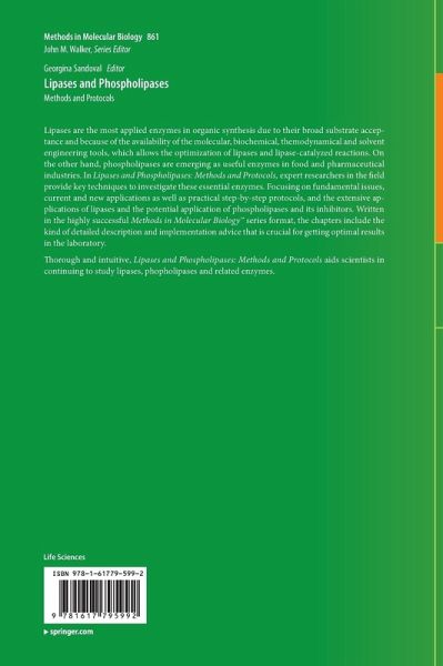 Lipases: an Overview.-Lipases or Esterases: Does it Really Matter? Toward a New Bio-Physico-Chemical Classification.-Study of New Feruloyl Esterases to Understand Lipase Evolution: The Case of Bacillus Flexus.-Phospholipases: an Overview.-High-Throughput Screening Method for Lipases/Esterases.-Functional-Based Screening Methods for Lipases, Esterases and Phospholipases in Metagenomic Libraries.-Plant Lipases:Partial Purification of C. papaya Lipase.-Plant Phospholipases: an Overview.-Lipase and Phospholipase Inhibitors: Design and Applications.-High-Throughput Assay of Secreted Phospholipases A2 Inhibitors.-Heterologous Expression Systems for Lipases: A Review.- Streptomyces phospholipase D Cloning and Production.-Cloning of PLD2 from Baculovirus for Studies in Inflammatory Responses.-Lipases Production by Solid-State Fermentation: The Case of Rhizopus Homothallicus in Perlite.-Lipases and Esterases from Extremophiles: Overview and Case Example of the Production and Purification of an Esterase from Thermus thermophilus HB27.-Purification, Biochemical and Kinetic Properties of Recombinant Staphylococcus aureus Lipase.-Phospholipase A2 Purification and Characterization; A Case Study.-The Yeast Yarrowia lipolytica as a Generic Tool for Molecular Evolution of Lipases.-Molecular Modeling of Lipase Binding to a Substrate-Water Interface.-Different Strategies for Hyperactivation of Lipase Biocatalysts.-Rational Design ofImmobilized Lipases and Phospholipases.-Thermodynamical Methods for the Optimization of Lipase Catalyzed Reactions.-Lipases as Biocatalysts for the Synthesis of Structured Lipids.-Lipase-Catalyzed Modification of Phenolic Antioxidants.-Lipases as Catalysts in Synthesis of Fine Chemicals.-Lipases in Green Chemistry: Acylation and Alcoholysis on Steroids and Nucleosides.-Lipases as Biocatalyst for Biodiesel Production.-Biopolymer Synthesis Catalyzed by Lipases.-Phospholipases in Food Industry - A Review.-Lipase and Phospholipase Biosensors: a Review.