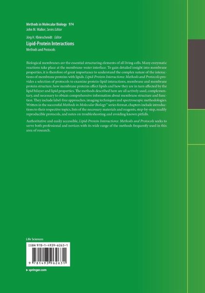Biological membranes are the essential structuring elements of all living cells. Many enzymatic reactions take place at the membrane-water interface. To gain detailed insight into membrane properties, it is therefore of great importance to understand the complex nature of the interactions of membrane proteins with lipids. Lipid-Protein Interactions: Methods and Protocols provides a selection of protocols to examine protein-lipid interactions, membrane and membrane protein structure, how membrane proteins affect lipids and how they are in turn affected by the lipid bilayer and lipid properties. The methods described here are all actively used, complementary, and necessary to obtain comprehensive information about membrane structure and function. They include label-free approaches, imaging techniques and spectroscopic methodologies. Written in the successful Methods in Molecular Biology(TM) series format, chapters include introductions to their respective topics, lists of the necessary materials and reagents, step-by-step, readily reproducible protocols, and notes on troubleshooting and avoiding known pitfalls.