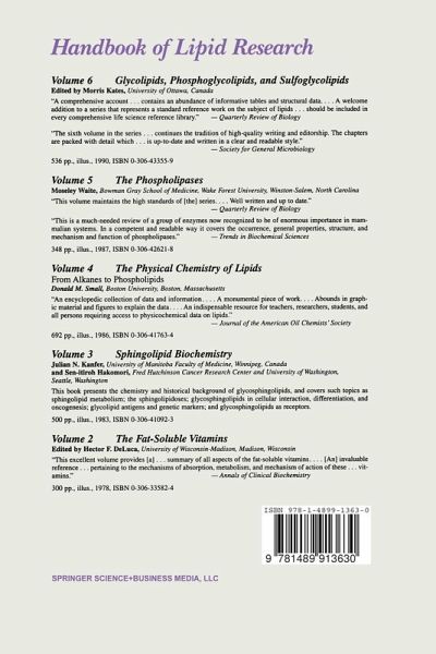 Lipids traditionally have been viewed as serving two functions: to form cellular membranes and to serve as energy stores. During the last two decades, a new role for lipids has taken center stage: lipids can act as signalling molecules. This book deals with a variety of lipids that have been shown to be messengers. Leading scientists explore all known lipid classes except steroid hormones. Researchers and educators in biochemistry as well as in molecular and cellular biology will appreciate this volume.
