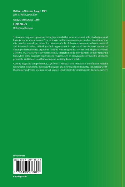 Cutting-edge and comprehensive, Lipidomics: Methods and Protocols is a useful and valuable resource for biochemists, molecular biologists, and neuroscientists interested in neurology, ophthalmology and vision sciences, as well as massspectrometrists with interest in disease discovery.