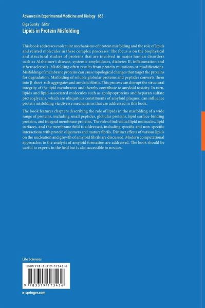 Protein conversion from a water-soluble native conformation to the insoluble aggregates and fibrils, which can deposit in amyloid plaques, underlies more than 20 human diseases, representing a major public health problem and a scientific challenge. Such a conversion is called protein misfolding. Protein misfolding can also involve errors in the topology of the folded proteins and their assembly in lipid membranes. Lipids are found in nearly all amyloid deposits in vivo, and can critically influence protein misfolding in vitro and in vivo in many different ways. This book focuses on recent…mehr
