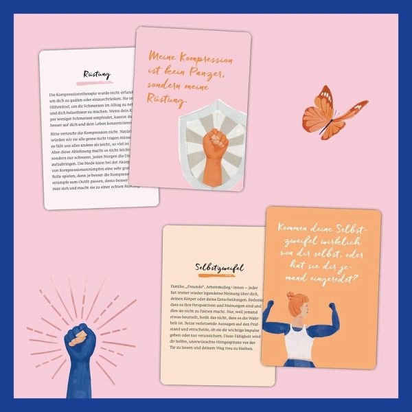 Raus aus der Gedankenspirale und rein in ein liebevolles Verhältnis zu deinem Körper: Dieses einzigartige Kartenset von Caroline Sprott, "Mutti der Lipödem-Community" (@powersprotte), unterstützt dich dabei. Mit Affirmationen, Gedankenspielen, Fragen und Übungen kannst du Woche für Woche mehr Selbstwertgefühl entwickeln und dich Stück für Stück unbeschwerter fühlen. Mit 52 liebevollen Illustrationen von Hanna Niestegge.