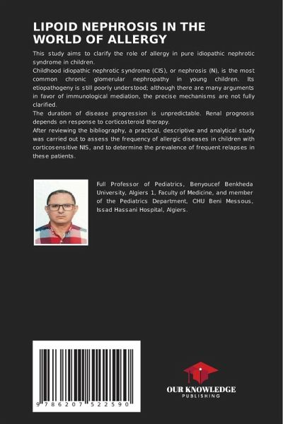This study aims to clarify the role of allergy in pure idiopathic nephrotic syndrome in children. Childhood idiopathic nephrotic syndrome (CIS), or nephrosis (N), is the most common chronic glomerular nephropathy in young children. Its etiopathogeny is still poorly understood; although there are many arguments in favor of immunological mediation, the precise mechanisms are not fully clarified.The duration of disease progression is unpredictable. Renal prognosis depends on response to corticosteroid therapy.After reviewing the bibliography, a practical, descriptive and analytical study was carried out to assess the frequency of allergic diseases in children with corticosensitive NIS, and to determine the prevalence of frequent relapses in these patients.