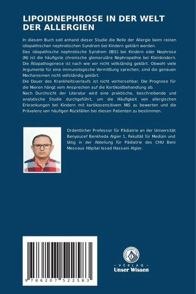 In diesem Buch soll anhand dieser Studie die Rolle der Allergie beim reinen idiopathischen nephrotischen Syndrom bei Kindern geklärt werden. Das idiopathische nephrotische Syndrom (IBS) bei Kindern oder Nephrose (N) ist die häufigste chronische glomeruläre Nephropathie bei Kleinkindern. Die Ätiopathogenese ist nach wie vor nicht vollständig geklärt. Obwohl viele Argumente für eine immunologische Vermittlung sprechen, sind die genauen Mechanismen nicht vollständig geklärt.Die Dauer des Krankheitsverlaufs ist nicht vorhersehbar. Die Prognose für die Nieren hängt vom Ansprechen auf die Kortikoidbehandlung ab.Nach Durchsicht der Literatur wird eine praktische, beschreibende und analytische Studie durchgeführt, um die Häufigkeit von allergischen Erkrankungen bei Kindern mit kortikosensitivem NIS zu bewerten und die Prävalenz von häufigen Rückfällen bei diesen Patienten zu bestimmen.