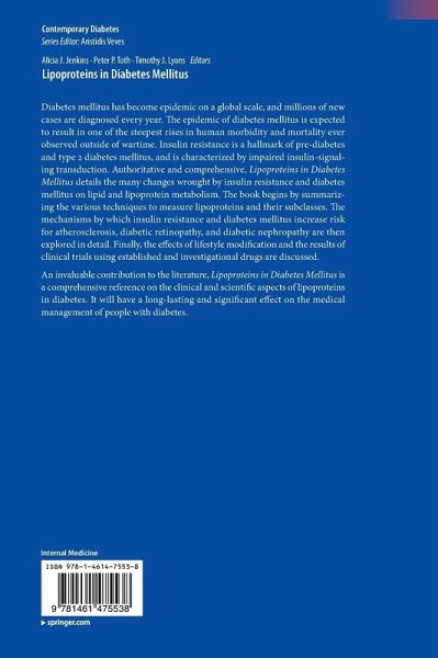 An invaluable contribution to the literature, Lipoproteins in Diabetes Mellitus is a comprehensive reference on the clinical and scientific aspects of lipoproteins in diabetes. It will have a long-lasting and significant effect on the medical management of people with diabetes.