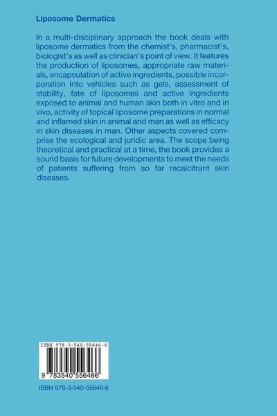 In a multi-disciplinary approach the book deals withliposome dermatics fromthe chemist's, pharmacist's,biologist's as well as clinician's point of view. Itfeatures the production of liposomes, appropriate rawmaterials, encapsulation of active ingredients, possibleincorporation into vehicles such as gels, assessment ofstability, fate of liposomes and active ingredients exposedto animaland human skin both in vitro and in vivo, activityof topical liposome preparations in normal and inflamed skinin animal and man as well as efficacy in skin diseases inman. Other aspects covered comprise the ecological andjuridic area. The scope being theoretical and practical at atime, the book provides a sound basis for futuredevelopments to meet the needs of patients suffering from sofar recalcitrant skin diseases.