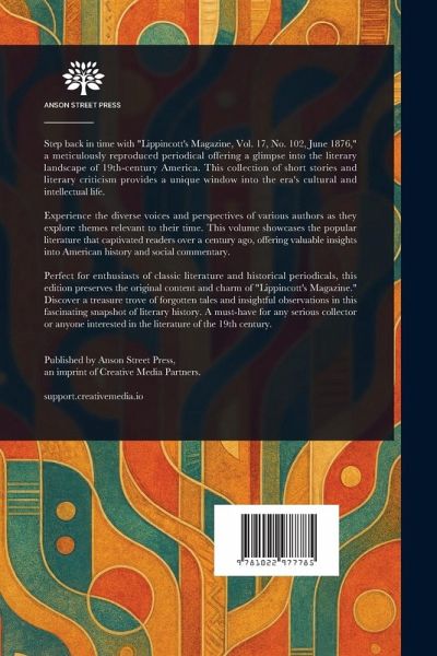 Step back in time with "Lippincott's Magazine, Vol. 17, No. 102, June 1876," a meticulously reproduced periodical offering a glimpse into the literary landscape of 19th-century America. This collection of short stories and literary criticism provides a unique window into the era's cultural and intellectual life. Experience the diverse voices and perspectives of various authors as they explore themes relevant to their time. This volume showcases the popular literature that captivated readers over a century ago, offering valuable insights into American history and social commentary. Perfect for enthusiasts of classic literature and historical periodicals, this edition preserves the original content and charm of "Lippincott's Magazine." Discover a treasure trove of forgotten tales and insightful observations in this fascinating snapshot of literary history. A must-have for any serious collector or anyone interested in the literature of the 19th century. This work has been selected by scholars as being culturally important, and is part of the knowledge base of civilization as we know it. This work is in the public domain in the United States of America, and possibly other nations. Within the United States, you may freely copy and distribute this work, as no entity (individual or corporate) has a copyright on the body of the work. Scholars believe, and we concur, that this work is important enough to be preserved, reproduced, and made generally available to the public. We appreciate your support of the preservation process, and thank you for being an important part of keeping this knowledge alive and relevant.