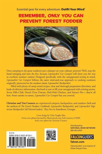 Having sold more than 100,000 copies of their outdoor cooking books, Tim and Christine Conners are experienced campers, backpackers, and outdoor chefs and the authors of The Scout's Outdoor Cookbook, Lipsmackin' Backpackin', and Lipsmackin' Vegetarian Backpackin'. The Conners have twice served as judges for Scouting magazine's prestigious national camp food cooking contest. Learn more at www.booksbyconners.com.