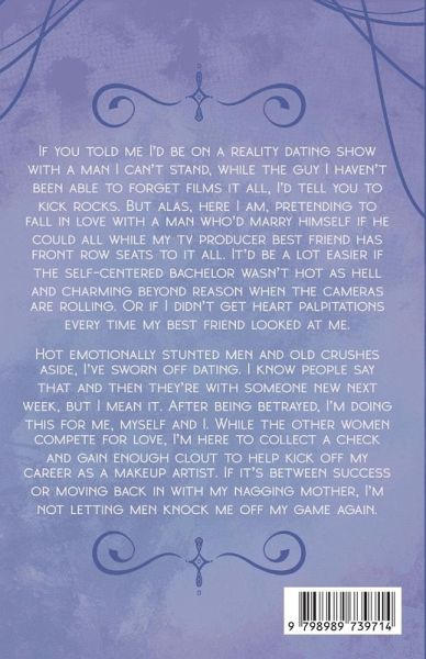 If you told me I'd be on a reality dating show with a man I can't stand, while the guy I haven't been able to forget films it all, I'd tell you to kick rocks. But alas, here I am, pretending to fall in love with a man who'd marry himself if he could all while my tv producer best friend has front row seats to it all. It'd be a lot easier if the self-centered bachelor wasn't hot as hell and charming beyond reason when the cameras are rolling. Or if I didn't get heart palpitations every time my best friend looked at me. Hot emotionally stunted men and old crushes aside, I've sworn off dating. I know people say that and then they're with someone new next week, but I mean it. After being betrayed, I'm doing this for me, myself and I. While the other women compete for love, I'm here to collect a check and gain enough clout to help kick off my career as a makeup artist. If it's between success or moving back in with my nagging mother, I'm not letting men knock me off my game again.