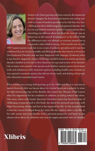 Autism is the fastest growing and most common developmental disorder. Imagine the frustration and anxiety over taking your child to a team of medical specialists to be told that they have a lifelong and often debilitating developmental disorder with no cure and limited treatment options? Lauren's parents knew something was different about her from the time she was an infant but as she entered Kindergarten in the fall of 1986 her differences were very obvious to everyone around her as compared to other children her age. A few months later in early 1987 Lauren's parents took her to see a team of pediatric specialists and it was then confirmed that she had an incurable and lifelong disorder then known as Pervasive Developmental Disorder and was later diagnosed with Asperger Syndrome when it was listed in diagnostic criteria. Today that would be known as autism spectrum disorder classified as level one to three based on the type and severity of the disorder. Like so many other parents with special needs children Lauren's parents faced many trials and tribulations with treatment options including health costs, limited yet very expensive treatment options that did not always work, and dealing with people who oftentimes misunderstood Lauren. When Lauren was a young child growing up in the 1980s and 90's in a rural area in eastern Kentucky little was known about the Autism Spectrum in general, let alone the high functioning type of the disorder that Lauren has. Because of this Lauren often felt stigmatized for her condition in addition to feeling isolated and alone. Like many others with Autism Spectrum Disorders Lauren has faced her share of challenging symptoms and in this book, she shares her personal experience with High Functioning Autism and how it has impacted her life. In this memoir book written by Lauren firsthand about her entire life she explains what it was like to live with autism spectrum disorder from a personal perspective and hopes to also educate others about the condition and erase the stigma associated with the disorder.