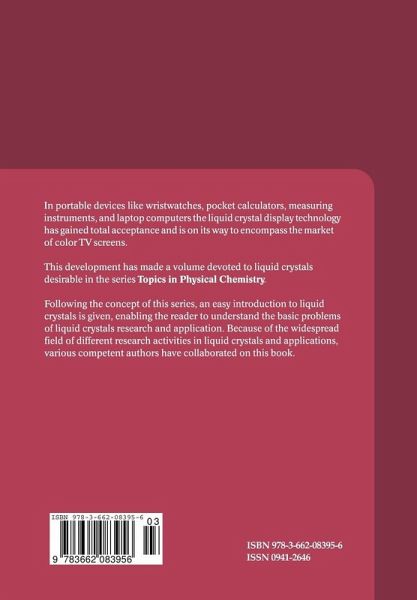 In 1959, about 1400 compounds forming liquid crystalline phases were known; by 1992, this number had increased to about 50 000. In portable devices like wristwatches, pocket caculators, measuring instruments, and laptop computers the liquid crystal display technology has gained total acceptance and is on the way to encompass the market of colour TV screens. This development makes a volume devoted to liquid crystals in the series Topics in Physical Chemistry desirable. Following the concept of this series, an easy introduction to liquid crystals is given, enabling the reader to understand the basic problems of liquid crystals research and application. Because of the widespread field of different research activities in liquid crystals and applications, various competent authors have been involved in writing chapters on: - Phase types, structures, and chemistry of liquid crystals; - Thermodynamical behavior and physical properties of thermotropic liquid crystals; - Liquid crystalline polymers; - Lyotropic liquid crystals; - Application of liquid crystals in spectroscopy; - Application of liquid crystals in display technology.