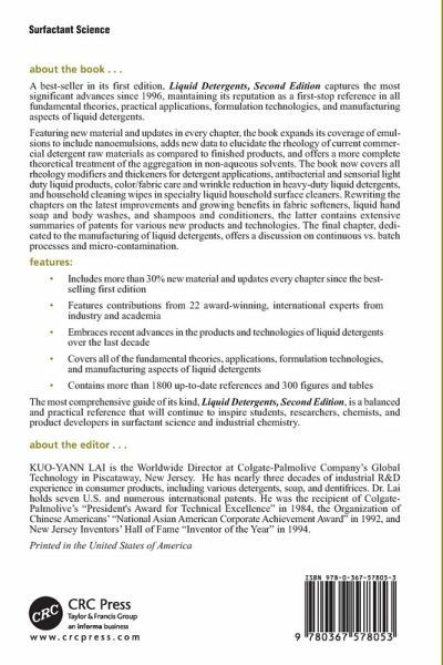 The most comprehensive guide of its kind, Liquid Detergents, Second Edition, is a balanced and practical reference that will continue to inspire students, researchers, chemists, and product developers in detergent industry, surfactant science and industrial chemistry.