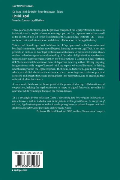 Three years ago, the first Liquid Legal book compelled the legal profession to reassess its identity and to aspire to become a strategic partner for corporate executives as well as for clients. It also led to the foundation of the Liquid Legal Institute (LLI) - an association that sparks innovation and drives collaboration in the legal industry. This second Liquid Legal book builds on the LLI's progress and on the lessons learned by a legal community that has moved beyond focusing purely on LegalTech. It not only presents an outlook on how legal professionals will operate in the future, but also allows readers to develop a genuine understanding of the value of digitalization, standardization and new methodologies. Further, the book outlines a Common Legal Platform (CLP) and makes it the common point of departure for every author, offering inspiring insights from a wide range of forward-thinking experts who are all invested in driving new thinking within the legal ecosystem. The book also features "Liquid Legal Waves," which provide links between the various articles, connecting concrete ideas, practical solutions and specific topics and putting them into perspective, and so creating a true network of ideas for readers. A must read, this book is vibrant proof of the power of sharing, collaboration and coopetition, helping the legal profession to shape its digital future and revitalize its relevance while retaining a focus on the human lawyer.