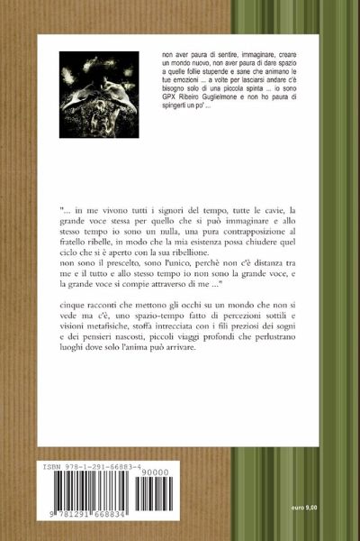 cinque racconti che mettono gli occhi su un mondo che non si vede ma c'è, uno spazio tempo rarefatto e sottile che intreccia le emozioni e i sogni, le visioni e le sensazioni che fluttuano nel cuore e nella mente dell'uomo e che quasi mai si lasciano acciuffare. quando racconti metafisici si affacciano ai sensi della coscienza vanno colti come frutti maturi e condivisi