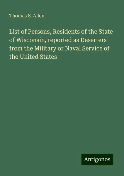 List of Persons, Residents of the State of Wisconsin, reported as Deserters from the Military or Naval Service of the United States - Allen, Thomas S.