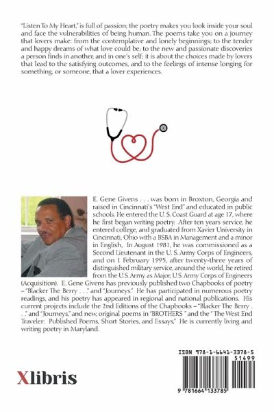 "Listen To My Heart," is full of passion; the poetry makes you look inside your soul and face the vulnerabilities of being human. The poems take you on a journey that lovers make: from the contemplative and lonely beginnings; to the tender and happy dreams of what love could be; to the new and passionate discoveries a person finds in another, and in one's self; it is about the choices made by lovers that lead to the satisfying outcomes, and to the feelings of intense longing for something, or someone, that a lover experiences.