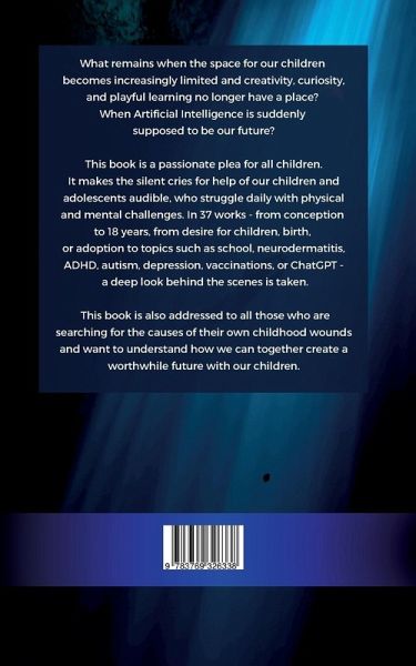 What remains when the space for our children becomes increasingly limited and creativity, curiosity, and playful learning no longer have a place? When Artificial Intelligence is suddenly supposed to be our future? This book is a passionate plea for all children. It makes the silent cries for help of our children and adolescents audible, who struggle daily with physical and mental challenges. In 37 works - from conception to 18 years, from desire for children, birth, or adoption to topics such as school, neurodermatitis, ADHD, autism, depression, vaccinations, or ChatGPT - a deep look behind the scenes is taken. This book is also addressed to all those who are searching for the causes of their own childhood wounds and want to understand how we can together create a worthwhile future with our children.