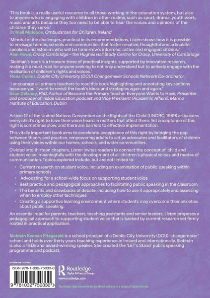 'Siobhan's book is a treasure trove of practical insights, supported by innovative research, making it a must read for anyone seeking to not only understand but to actively engage with the realisation of children's rights and voices.'