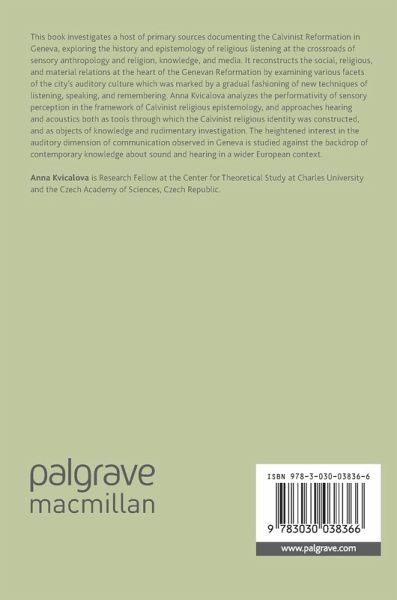 This book investigates a host of primary sources documenting the Calvinist Reformation in Geneva, exploring the history and epistemology of religious listening at the crossroads of sensory anthropology and religion, knowledge, and media. It reconstructs the social, religious, and material relations at the heart of the Genevan Reformation by examining various facets of the city's auditory culture which was marked by a gradual fashioning of new techniques of listening, speaking, and remembering. Anna Kvicalova analyzes the performativity of sensory perception in the framework of Calvinist religious epistemology, and approaches hearing and acoustics both as tools through which the Calvinist religious identity was constructed, and as objects of knowledge and rudimentary investigation. The heightened interest in the auditory dimension of communication observed in Geneva is studied against the backdrop of contemporary knowledge about sound and hearing in a wider European context.