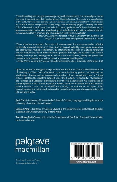 "Close attention to aesthetic form sets this volume apart from previous studies, offering technically informed insights into issues such as musical hybridity, cross-genre adaptation, and intercultural musical composition. Byattending to the form of Cultural revolution musical productions, rather than simply their political messages, the authors of this volume identify new ways for thinking about Cultural Revolution culture, linking this period with broader artistic questions, as well as historical precedents and legacies." - Emily Wilcox, Assistant Professor of Modern Chinese Studies, University of Michigan, USA