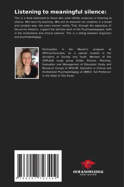 This is a book dedicated to those who seek infinite universes in listening to silence. Who learn by teaching. Who aim to welcome our students in a broad and complex way, like every human reality. That, through the apparatus of Discourse Analysis, support the delicate work of the Psychopedagogue, both in the institutional and clinical spheres. This is a dialog between linguistics and psychopedagogy.