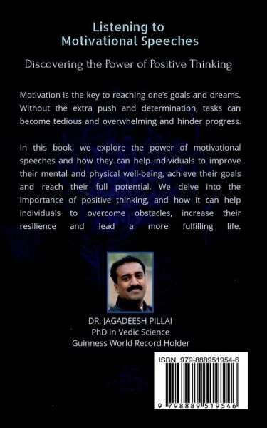Motivation is the key to reaching one’s goals and dreams. Without the extra push and determination, tasks can become tedious and overwhelming and hinder progress. Positive thinking and positive reinforcement are important when striving towards objectives, as they provide a sense of clarity and purpose that keeps one going despite the difficulties that life may bring. In this book, we explore the power of motivational speeches and how they can help individuals to improve their mental and physical well-being, achieve their goals and reach their full potential. We delve into the importance of positive thinking, and how it can help individuals to overcome obstacles, increase their resilience and lead a more fulfilling life. Throughout the book, we provide strategies and techniques for actively listening to speeches, identifying and setting achievable goals, overcoming challenges, developing self-awareness, building self-confidence, practicing mindfulness, developing a positive attitude, finding motivation, and taking action towards success. The book is designed for anyone who is looking to improve their personal and professional life and gain a deeper understanding of the power of positive thinking and motivation. It is written for those who want to make positive changes in their life and are looking for inspiration and guidance to help them achieve their goals.