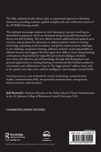 This textbook encourages students to view listening as a process involving six interrelated components which are developed along the parallel dimensions of theory and skill building. This new edition includes additional and updated cases, exercises, and questions for discussion to address students' world of evolving technology, expanding social boundaries, and global communication challenges. A new challenge, integrative listening, addresses students' social responsibility as effective listeners and suggests that they apply their skills to create strong listening environments characterized by respectful and inclusive dialogue. Students move from self-reflection and self-knowledge through skill development and personal applications to creating listening environments that facilitate productive conversation and collaboration. Cases in "the bigger picture" address issues such as the opioid crisis, fake news, artificial intelligence, and teenagers' mental health.