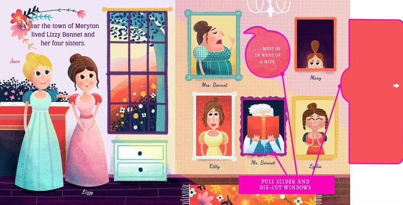 "To be fond of dancing was a certain step towards falling in love." —Pride and Prejudice, Jane Austen Filled with interactive wheels and pull-tabs and lavishly illustrated, Lit for Little Hands: Pride and Prejudice is an unprecedented kid's introduction to Jane Austen's beloved classic novel. Unlike many board books that tackle the classics, Lit for Little Hands tells the actual story in simple, engaging prose. Gorgeous pastoral illustrations transport the reader to the fields and estates of Lizzy's England, while tons of interactive elements invite kids to spin the dancers at the ball, care for Jane, open a shocking letter, and more! Austen fans will be delighted by the book's attention to detail and clever use of original dialog. And the book's use of super-sturdy board means everyone can enjoy this tale of wit and romance over . . . and over . . . and over again!