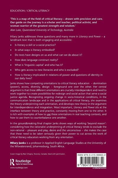 In the groundbreaking final chapter Janks considers how the rationalist underpinning of critical literacy tends to exclude the non-rationalshows ways of working 'beyond reason' - pleasure and play, desire and the unconscious - and makes the case that these need to be taken seriously given their power to cut across the work of critical literacy educators working from any orientation.
