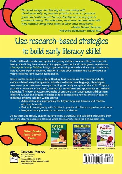 s Development and Literacy Learning How Children Develop and Learn Child Development: The Foundation for Literacy Introducing Rebecca, Juan, Michael, and Annie Foundations for Learning to Read Supportive Classroom Environments Summary Chapter 2. Language Development and Diversity Role of Oral Language in Literacy Development What Does Research Say About How Children Acquire Language? Benchmarks of Oral Language Development for Preschool Children Assessing Oral Language Development Research-Based Instructional Strategies Supporting Oral Language Development Language Diversity Summary Chapter 3. Phonological Awareness Development in Preschool Children What Is Phonological Awareness and What Is Its Role in Literacy Development? What does Research Say About How Children Acquire Phonological Awareness? Indicators of Children