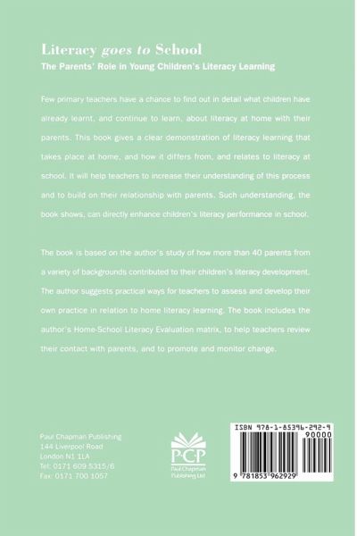 `Very accessible - not too technical or jargon-ridden. The practical suggestions were useful too - if professionals feel inspired to promote change in their practice and policy it is helpful to have suggestions on where to start and what to do' - Management in Education Few primary teachers have a chance to find out in detail what children have already learnt, and continue to learn, about literacy at home with their parents. This book gives a clear demonstration of literacy learning that takes place at home, and how it differs from, as well as relates to, literacy at school. It will help teachers to increase their understanding of this process and to build on their relationship with parents. Such understanding, the book shows, can directly enhance children's literacy performance in school.