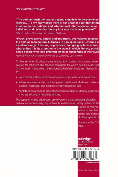 "Fresh, provocative, timely, and important, this volume extends the field of sociocultural literacies in new directions."--Marjorie Faulstich Orellana, University of California, Los Angeles On the frontline of critical issues in education today, this book covers new ground for teachers and teacher educators for whom crisis is a daily part of their work. It explores the relationship between crisis and literacy in order to: improve educators' ability to recognize, cope with, and avoid crisis; advance understanding of the dynamic relationship between crisis and cultural, historical, and political literacy practices; and contribute to a deeper theoretical understanding of literacy practices as they are situated in social practices. The types of crises addressed are diverse, including natural disaster, cultural and community disjuncture, homelessness, family upheaval, teen pregnancy, and disability. Along with nine empirical studies, a teacher early in her career, a veteran teacher, and teacher educators share their perspectives in commentary sections at the opening and conclusion of the book in order to provide applications to their specific fields.