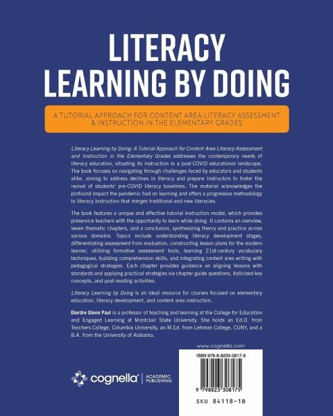 Literacy Learning by Doing: A Tutorial Approach for Content Area Literacy Assessment and Instruction in the Elementary Grades addresses the contemporary needs of literacy education, situating its instruction in a post-COVID educational landscape. The book focuses on navigating through challenges faced by educators and students alike, aiming to address declines in literacy and prepare instructors to foster the revival of students' pre-COVID literacy baselines. The material acknowledges the profound impact the pandemic had on learning and offers a progressive methodology to literacy instruction that merges traditional and new literacies. The book features a unique and effective tutorial instruction model, which provides preservice teachers with the opportunity to learn while doing. It contains an overview, seven thematic chapters, and a conclusion, synthesizing theory and practice across various domains. Topics include understanding literacy development stages, differentiating assessment from evaluation, constructing lesson plans for the modern learner, utilizing formative assessment tools, learning 21st-century vocabulary techniques, building comprehension skills, and integrating content area writing with pedagogical strategies. Each chapter provides guidance on aligning lessons with standards and applying practical strategies via chapter guide questions, italicized key concepts, and post-reading activities. Literacy Learning by Doing is an ideal resource for courses focused on elementary education, literacy development, and content area instruction.