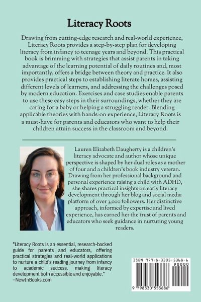 Literacy Roots: Nurturing Your Child's Reading Journey from Birth to Brilliance bridges the gap between academic theory and daily practice. Research shows that only a third of fourth-and eighth-graders read at proficient levels. Studies indicate that early literacy intervention is more effective than later remediation. This book gives parents and educators research-based ways to build strong literacy skills in young children. The book is needed now more than ever as literacy demands become increasingly complex in our digital age. Most literacy resources focus on school-based instruction or specific reading issues. Literacy Roots takes a holistic, family-centered approach. It bridges the gap between academic research and daily practice, empowering parents to become effective first teachers in their children's literacy journeys. Main themes include: ¿The critical role of early language exposure and interaction ¿Creating literacy-rich home environments ¿Supporting diverse learners and multilingual families ¿Integrating digital literacy with traditional reading skills ¿Building strong school-home partnerships ¿Addressing literacy challenges proactively ¿Fostering cultural literacy and global awareness ¿Developing 21st-century literacy skills The book's objectives are to: ¿Provide parents with effective, research-backed ways to support literacy from birth to high school ¿Help families create sustainable literacy routines that work within their unique circumstances ¿Guide parents in identifying and addressing potential literacy challenges early ¿Empower families to advocate for their children's literacy needs ¿Build confidence in parents as their children's first and most influential teachers Drawing from current research and real-world examples, Literacy Roots offers a blend of theoretical understanding and practical application. Each chapter has reflection questions, exercises, and strategies for families to use right away, and the book recognizes diverse families and cultures. It offers flexible, adaptable approaches for different situations. The approach is both thorough and easy to understand. It avoids jargon while maintaining scientific rigor. Readers learn to turn everyday moments into literacy-building opportunities through case studies, expert insights, and practical activities. The book progresses from basic concepts to advanced skills, which lets families grow with their children's developing abilities. Literacy Roots stands out for its family focus, cultural sensitivity, and a blend of traditional and digital literacy skills. It knows that strong literacy comes not just from lessons but also from nurturing relationships and daily interactions. The book empowers parents with knowledge and tools and helps create the conditions for children to become proficient readers. They will also be confident, curious learners who find joy in literacy. This guide meets a key need in early childhood education. It offers parents and educators a roadmap for building strong literacy skills from early childhood through elementary school and beyond.