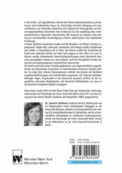 In dieser qualitativ-empirischen Studie wird die Rezeption von Mirjam Presslers zeitgeschichtlichem Jugendroman Malka Mai durch Schülerinnen und Schüler in Deutschland und in Polen untersucht. Der Roman erzählt die Geschichte der Flucht einer jüdischen Familie von Polen nach Ungarn im Jahr 1943. In 9. und 10. Klassen wurden teilnehmende Unterrichtsbeobachtungen sowie fokussierte Interviews durchgeführt. Anhand von key incidents und ihrer Triangulation werden historische und anthropologische Lernpotentiale rekonstruiert.