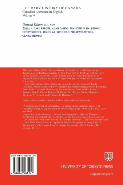 This new volume of the Literary History of Canada covers the continuing development of English-Canadian writing from 1972 to 1984. As with the three earlier volumes, this book is an invaluable guide to recent developments in English-Canadian literature and a resource for both the general reader and the specialist researcher.