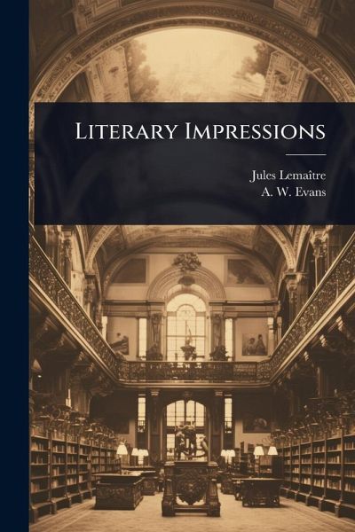 "Literary Impressions" is a collection of insightful essays by Jules LemaÃ(R)tre, offering a critical perspective on various European literary figures and movements of the late 19th and early 20th centuries. LemaÃ(R)tre's essays, translated by A. W. Evans, provide valuable commentary on the nuances of French literature and its broader European context. Exploring the works of celebrated authors and analyzing prevailing literary trends, this collection is a significant contribution to the field of literary criticism. This book provides readers with an engaging and thought-provoking exploration of the literary landscape of a pivotal era. This work has been selected by scholars as being culturally important, and is part of the knowledge base of civilization as we know it. This work was reproduced from the original artifact, and remains as true to the original work as possible. Therefore, you will see the original copyright references, library stamps (as most of these works have been housed in our most important libraries around the world), and other notations in the work. This work is in the public domain in the United States of America, and possibly other nations. Within the United States, you may freely copy and distribute this work, as no entity (individual or corporate) has a copyright on the body of the work. As a reproduction of a historical artifact, this work may contain missing or blurred pages, poor pictures, errant marks, etc. Scholars believe, and we concur, that this work is important enough to be preserved, reproduced, and made generally available to the public. We appreciate your support of the preservation process, and thank you for being an important part of keeping this knowledge alive and relevant.