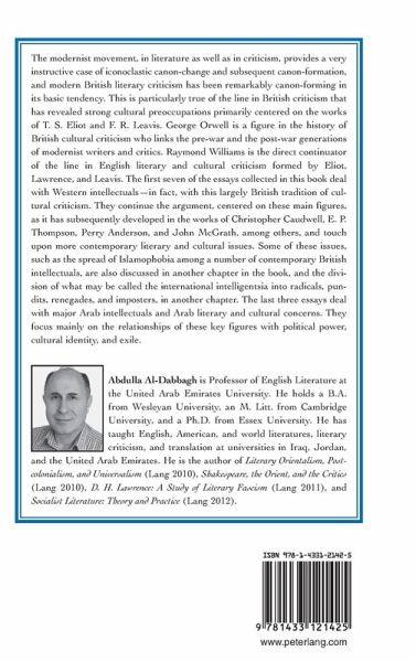 The modernist movement, in literature as well as in criticism, provides a very instructive case of iconoclastic canon-change and subsequent canon-formation, and modern British literary criticism has been remarkably canon-forming in its basic tendency. This is particularly true of the line in British criticism that has revealed strong cultural preoccupations primarily centered on the works of T. S. Eliot and F. R. Leavis. George Orwell is a figure in the history of British cultural criticism who links the pre-war and the post-war generations of modernist writers and critics. Raymond Williams is the direct continuator of the line in English literary and cultural criticism formed by Eliot, Lawrence, and Leavis. The first seven of the essays collected in this book deal with Western intellectuals - in fact, with this largely British tradition of cultural criticism. They continue the argument, centered on these main figures, as it has subsequently developed in the works of Christopher Caudwell, E. P. Thompson, Perry Anderson, and John McGrath, among others, and touch upon more contemporary literary and cultural issues. Some of these issues, such as the spread of Islamophobia among a number of contemporary British intellectuals, are also discussed in another chapter in the book, and the division of what may be called the international intelligentsia into radicals, pundits, renegades, and imposters, in another chapter. The last three essays deal with major Arab intellectuals and Arab literary and cultural concerns. They focus mainly on the relationships of these key figures with political power, cultural identity, and exile.