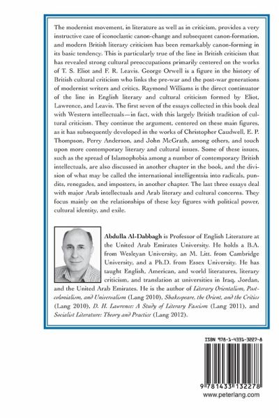 The modernist movement, in literature as well as in criticism, provides a very instructive case of iconoclastic canon-change and subsequent canon-formation, and modern British literary criticism has been remarkably canon-forming in its basic tendency. This is particularly true of the line in British criticism that has revealed strong cultural preoccupations primarily centered on the works of T. S. Eliot and F. R. Leavis. George Orwell is a figure in the history of British cultural criticism who links the pre-war and the post-war generations of modernist writers and critics. Raymond Williams is the direct continuator of the line in English literary and cultural criticism formed by Eliot, Lawrence, and Leavis. The first seven of the essays collected in this book deal with Western intellectuals - in fact, with this largely British tradition of cultural criticism. They continue the argument, centered on these main figures, as it has subsequently developed in the works of Christopher Caudwell, E. P. Thompson, Perry Anderson, and John McGrath, among others, and touch upon more contemporary literary and cultural issues. Some of these issues, such as the spread of Islamophobia among a number of contemporary British intellectuals, are also discussed in another chapter in the book, and the division of what may be called the international intelligentsia into radicals, pundits, renegades, and imposters, in another chapter. The last three essays deal with major Arab intellectuals and Arab literary and cultural concerns. They focus mainly on the relationships of these key figures with political power, cultural identity, and exile.