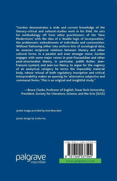 "Gordon demonstrates a wide and current knowledge of the literary-critical and cultural-studies work in his field. He sets his methodology off from other practitioners of the 'New Modernisms' with the idea of a 'double logic of incorporation,' the problematic embodiments of individuals and communities. Without flattening either into uniform bits of sociological data, he assesses reciprocal relations between literary and other cultural forms. In a parallel and even stronger move, Gordon engages with some major voices in post-Foucauldian and other post-structuralist theory, in particular, Judith Butler, Jean-François Lyotard, and Jean-Luc Nancy, to argue for the cogency of an analytical category he terms the impossibly material body, whose refusal of both regulatory inscription and critical interpretability makes an opening for 'alternative subjective and communal forms.' This is an original and insightful study." - Bruce Clarke, Professor of English, Texas Tech University; President, Society for Literature, Science, and the Arts (SLSA)